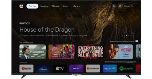 NDLR : il n'est pas formellement indiqué que ce téléviseur est muni d'un enregistreur, toutefois étant une Google TV, munie de 2 ports USB et ayant une télécommande commandant l'enregistrement ou la pause, il est très probable que la fonction y soit : merci de nous le confirmer si vous êtes en possession de la TV.