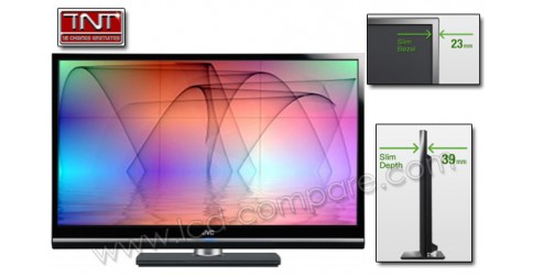 Avis : On peut apprécier la performance, ce téléviseur JVC est mince, c’est un des moins profonds actuellement sur le marché. Mais cette cure d’amaigrissement s’est fait au détriment du nombre de connecteurs, moyen pour cette gamme de prix. Le traitement vidéo est plus à son aise avec les signaux HD, et se perd un peu avec le tout venant SD. Enfin, un manque criant : pas de tuner TNT HD.