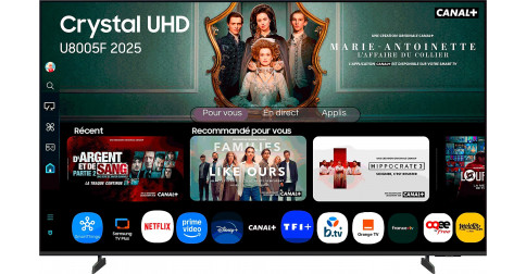 Navigateur intégré Compatible HbbTV v.2.0.4 Apps : Netflix • YouTube • Prime Video • Disney+ • Samsung TV Plus • B.TV+ • Orange TV • Oqee by Free • SFR TV • etc.